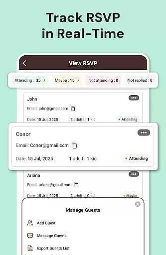 In addition to RSVP reminders, the app also allows setting reminders for various pre-event tasks. Whether it's confirming vendors or preparing seating charts, users can stay on top of their planning checklist with customized alerts.