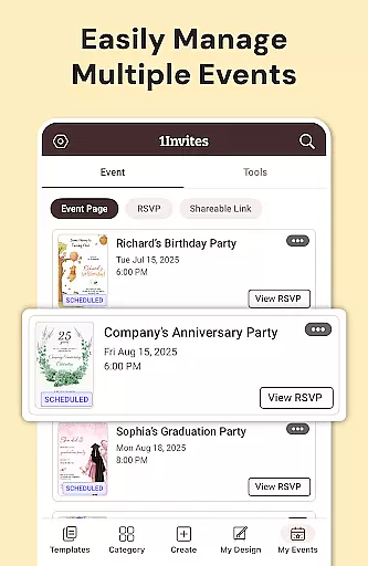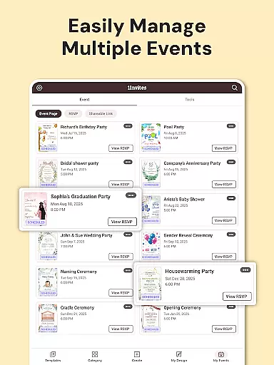 Whether you're planning an intimate party or a large-scale event, 1Invites helps you maintain control and clarity throughout the planning process. The app's seamless integration of design tools with practical event management features ensures that users can focus on enjoying their events rather than getting bogged down in logistical details.