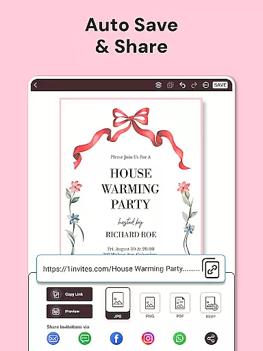 1Invites stands out with its extensive feature set designed to simplify event planning. The app provides a rich library of 20,000 premium templates that cater to different types of events, ensuring there's a perfect design for every occasion. Its user-friendly invitation card maker lets users customize templates with personal photos, colors, and styles without requiring any design experience.