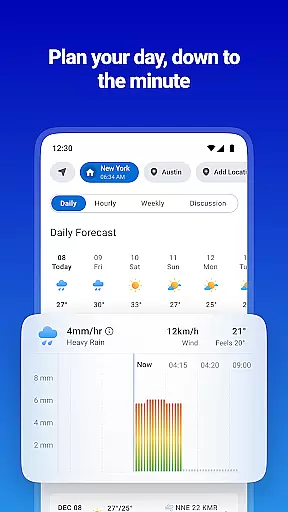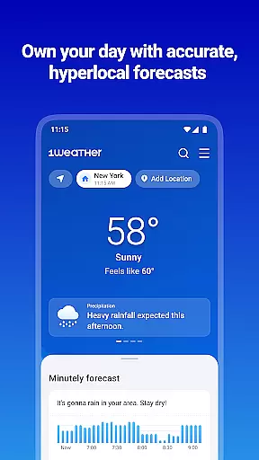 The app's core strength lies in its ability to deliver minute-by-minute forecasts up to 48 hours in advance, along with extended long-range outlooks. Whether planning outdoor activities or simply staying prepared for daily weather changes, 1Weather provides the necessary tools to make informed decisions. From tracking pollen counts for allergy sufferers to delivering breaking weather news through concise updates and videos, this app ensures users are always weather-ready.