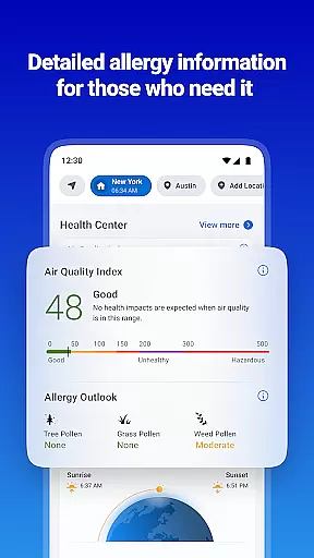 Beyond basic forecasting, 1Weather includes a Health Center that monitors air quality and pollen levels, making it especially useful for those with seasonal allergies. The Sun and Moon Tracker helps users plan outdoor activities by providing precise timings for sunrise, sunset, and moon phases. With multilingual support, customizable units, and adaptive themes, the app delivers a personalized experience while maintaining ease of use through its intuitive interface and beautiful widgets.