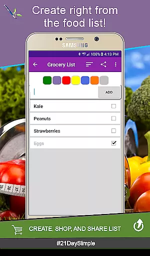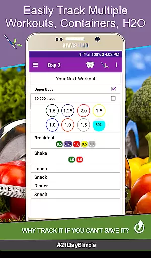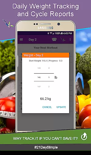 Additional highlights include the ability to create grocery lists from up-to-date food lists, add custom workouts, and generate comprehensive reports. These features collectively ensure that users have all the tools necessary to succeed in their fitness journey, making 21 Day Slimple a top choice for health-conscious individuals.