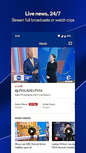 6abc Philadelphia is a comprehensive news application that provides real-time updates and live streaming of Action News. The app serves as a vital tool for staying informed about local news, weather forecasts through AccuWeather integration, and national stories from a trusted Philadelphia-based source. Users can customize their news feed based on personal interests and locations.