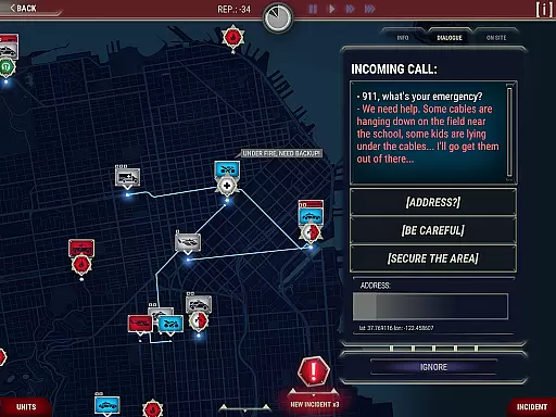A key feature is the ability to manage different types of emergency teams, including police, fire departments, and paramedics. Each team has access to various vehicles such as ambulances, police cars, helicopters, and motorcycles, along with essential equipment like bulletproof vests and first aid kits. Players must strategically deploy these resources to handle more than 140 types of reports they might encounter.