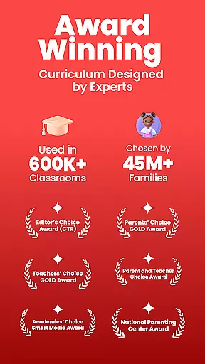 ABCmouse has earned numerous prestigious awards, including Mom’s Choice GOLD, Teachers’ Choice, and Parents’ Choice GOLD Awards. These accolades reflect the app's effectiveness in creating engaging educational experiences. The app's commitment to safety is evident in its 100% kid-friendly environment, ensuring parents can trust their children's digital learning space.