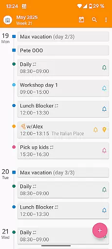 This synchronization process is seamless and automatic, meaning users do not have to worry about manually updating their calendars or tasks. Whether you add an event on your phone or modify a task on your tablet, aCalendar+ ensures that these changes are reflected everywhere, providing a unified and coherent view of your schedule.