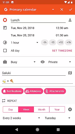 aCalendar+ stands out with its rich feature set tailored for productivity enthusiasts. The app includes fullscreen widgets and flexible recurrence options for events, allowing customization every 3 weeks, 17 days, or specific weekdays like Monday, Wednesday, and Friday.