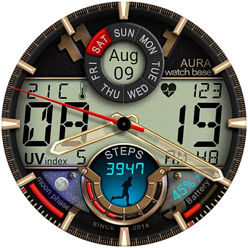 Bold, Modern Hybrid Watch Face for Wear OS. 10 Colors, Rich Info Display.