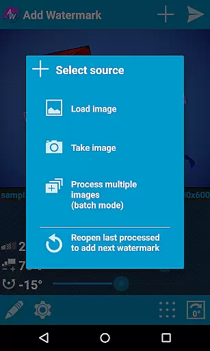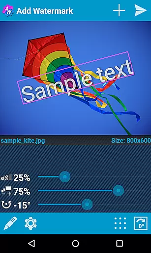 The app supports transparent PNG images as watermarks and offers various effects for text modes, such as fonts, colors, and other stylistic options. These features ensure that the watermark does not detract from the original image's quality but rather complements it in a visually pleasing manner.