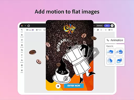 For photo editing, Adobe Express leverages AI technology to enhance images through intuitive tools. Users can apply Photoshop-powered filters, generate photo art, and even modify image content by adding or removing objects seamlessly. This ensures that whether you're enhancing personal photos or preparing marketing materials, the app delivers professional-grade results.