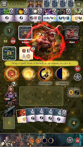 With 8 distinct breach mages, each having unique abilities, players can customize their strategies. The game supports solo to four-player cooperative modes, allowing you to build your deck from a market of 27 unique gems, relics, and spells. The dynamic turn order system and multiple win/loss conditions ensure every session is different.