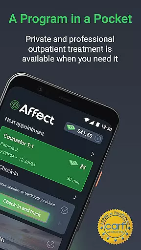 Affect is a pioneering medical application designed to support individuals on their journey to recovery from addiction. Unlike traditional sobriety trackers, Affect offers a comprehensive outpatient treatment program accessible directly through your smartphone. The app addresses various substance dependencies, including alcohol, cannabis, and opioids, providing users with a private and convenient solution that's both scientifically proven and potentially insurance-covered.