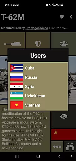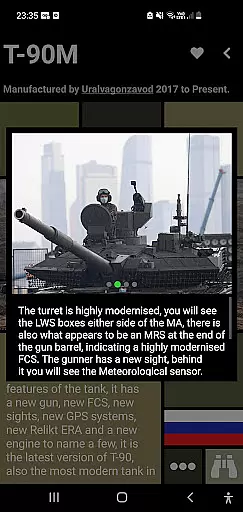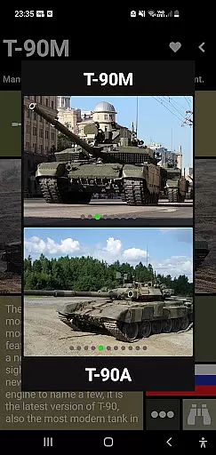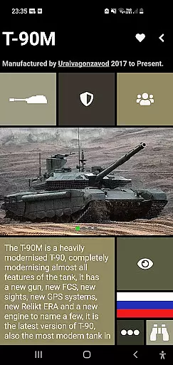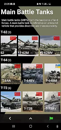 AFV Recognition is the premier guide for identifying Armoured Fighting Vehicles (AFVs), designed specifically for military personnel, enthusiasts, and scholars. This app provides detailed information on over 100 armored vehicles, focusing predominantly on Russian and Soviet models. Users can explore comprehensive AFV cards that include vehicle images, descriptions, weapon systems, types of protection, recognizing features, and countries where these vehicles are in service.
