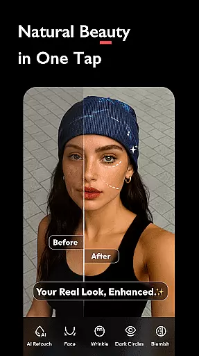 In AI Photo Editor - Polish, the AI Beautify tool smooths skin, retouches faces, and refines features using advanced face editor technology. Additionally, the AI Photo Enhancer fixes blurry photos and boosts quality to HD with just one tap, ensuring clarity and detail are preserved.