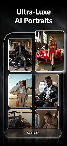 Additional features include AI-powered couple photo generation, pregnancy simulation, and professional role visualization. Users can explore various career appearances and generate realistic scenarios of luxury lifestyle photoshoots in high-end settings.