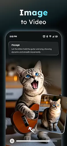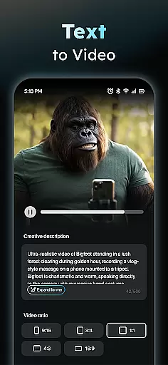 The application's AI Video Generator allows anyone to input text and automatically receive fully-fledged video content complete with scenes and music, effectively lowering the barrier for entry into video production. Additionally, the Photo to Video feature supports various subjects including real-persons, anime characters, and pets, offering versatility in content creation.