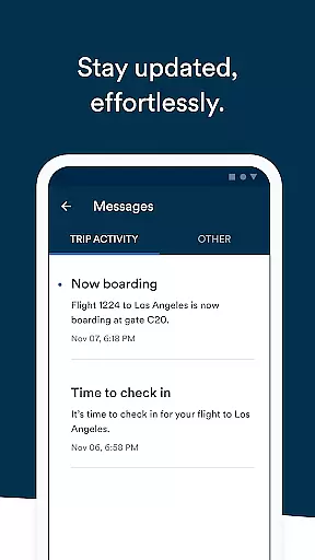 Travelers can stay updated with push notifications through the Message center, which alerts them about delays and gate changes. The app supports easy cancellations or changes to bookings, purchasing seat upgrades via Apple Pay, and checking in up to 24 hours before departure. Boarding passes can be added to Apple Wallet, shared with others, and flight details can be integrated into the iPhone's calendar, providing a seamless travel experience.