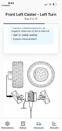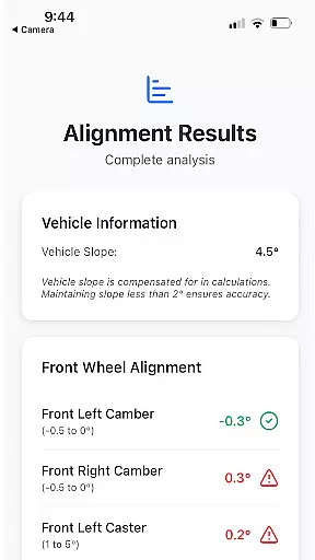 A key feature of Alignment Pro is its ability to compensate for vehicle slope, addressing issues caused by uneven driveways or surfaces. Additionally, the app provides a detailed alignment summary that highlights potential problems arising from out-of-tolerance conditions. These insights help users understand the implications of misalignment and explain these issues to customers effectively. Whether you're diagnosing problems or explaining repair needs, Alignment Pro ensures clarity and accuracy in every step of the process.
