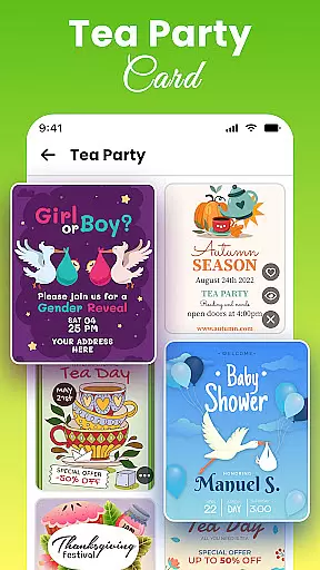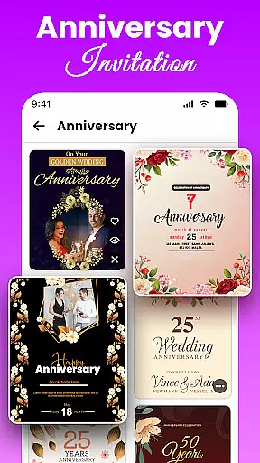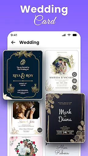 All Invitation Card Maker App stands out with its robust feature set designed to simplify the invitation creation process. One of the key highlights is the vast collection of pre-designed templates, which includes elegant wedding cards, fun birthday invitations, romantic engagement announcements, and more.