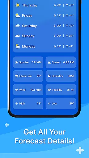 One of the standout features of All Weather Mode is its robust reporting system that includes temperature, sunrise, sunset, feels-like temperatures, humidity levels, wind speed, visibility, and more. Whether you're planning your daily activities or preparing for an outdoor adventure, this app delivers timely weather data to help you make informed decisions. Additionally, the 7-day forecast with hourly updates ensures you can plan your week with confidence.