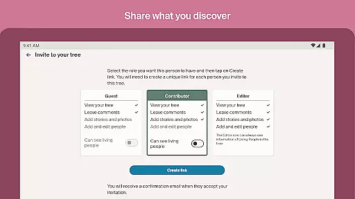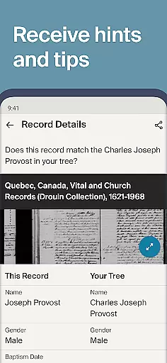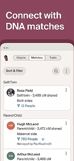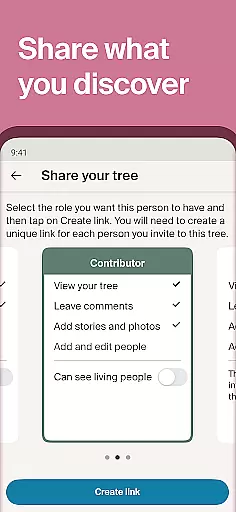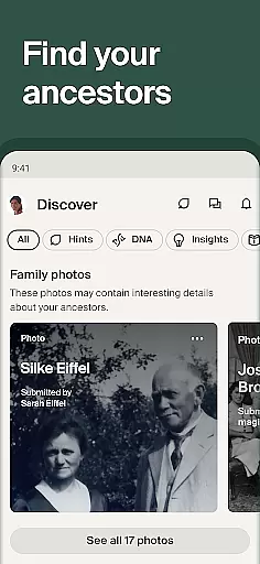 The app offers access to over 30 billion records and provides personalized hints about your ancestors. You can activate your AncestryDNA kit, view ethnicity results, and compare your DNA matches. The Discover feed helps you review and save findings for later use, while collaboration features let you work with family members to preserve your shared history.