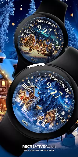 Animated North Pole Christmas is a festive Wear OS watch face that brings winter magic to your wrist. Featuring animated snowfall and magical sparkles, it captures the essence of Santa's journey through snowy towns. The watch face displays 12/24h digital time, date, battery status, and step count.