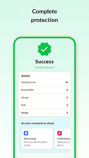 At its core, Antivirus Protector provides powerful antivirus scanning to detect and remove viruses, malware, and other security threats. Beyond security, the app offers detailed device insights, storage monitoring, sensor calibration, and network information, ensuring your device operates at optimal performance. Whether you're managing files or monitoring Wi-Fi and Bluetooth connections, this app delivers the tools you need to maintain a clutter-free and secure device.