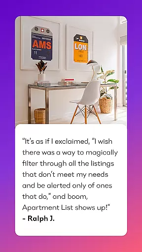 Apartment List is a comprehensive rental assistant designed to simplify the apartment hunting process. The app's innovative Rental Matchmaker Quiz saves users over 50 hours of searching by providing personalized matches for apartments, condos, and houses that fit their lifestyle. With features like virtual tours, live rent prices, and honest reviews from real renters, Apartment List ensures you have all the information needed to make an informed decision.
