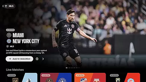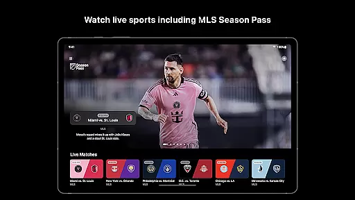In addition to original content, Apple TV offers live sports events such as Friday Night Baseball, featuring two MLB matchups every Friday during the regular season. Subscribers of MLS Season Pass can watch every Major League Soccer match live throughout the regular season, playoffs, and Leagues Cup without any blackouts.