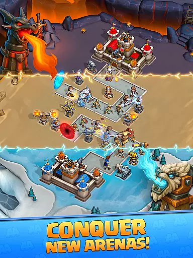 This competitive TD game combines strategy with elements of luck, offering infinite possibilities for defense setups. Whether participating in live events, climbing leaderboards, or teaming up with clan members, Arcane Arena delivers endless opportunities to prove your mastery in tower defense battles.