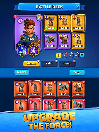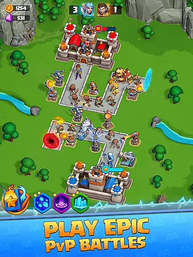 With multiple arenas to conquer, players face off against rivals by deploying legendary towers, class-matched heroes, and powerful skills. The goal is to defend your base from relentless enemy waves longer than your opponent or eliminate all enemies before they breach your defenses. Strategic tower placement, clever path design, and trick cards add layers of depth to every match.