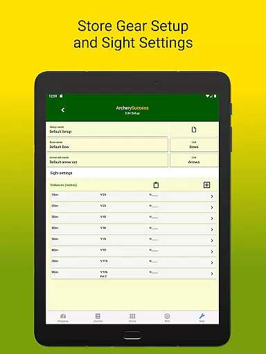 Additionally, the Plot Tab enables precise arrow plotting on zoomable target faces, complete with quick navigation and undo options. The Gear Tab helps manage different gear setups, ensuring that archers can track equipment changes and their impact on performance. With these comprehensive features, Archery Success delivers an unmatched user experience in archery training and competition preparation.