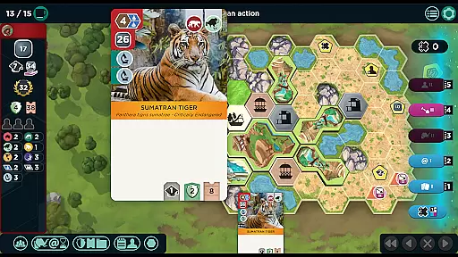 In Ark Nova, the absence of traditional AI opponents does not detract from the game's depth and challenge. Instead, the game focuses on player-driven interactions and strategic planning, providing a rich experience through its card system and action management.