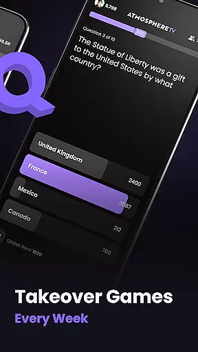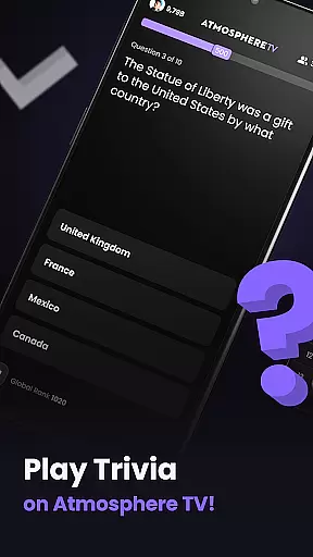 Atmosphere Trivia is an interactive trivia game designed to be played alongside its companion TV experience. This engaging app, brought to you by the creators of Chive TV and Atmosphere TV, offers a unique battle of wits that can turn any good night into a great one. With features allowing players to compete with friends or challenge their nemeses, it creates an immersive environment perfect for social gatherings.