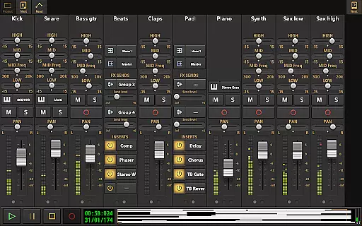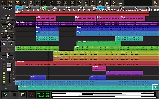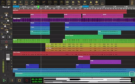 Users can take advantage of the drum pattern editor, low latency recording, unlimited undo/redo during audio and MIDI clip edits, and flexible effect routing with parallel paths. Real-time effects such as chorus, compressor, delays, EQs, reverb, noise gate, pitch shifter, and more enhance the creative possibilities. Additionally, the app facilitates automation of all mixer and effect parameters, punch in/out, MIDI remote control, and project interchangeability with its iOS counterpart.