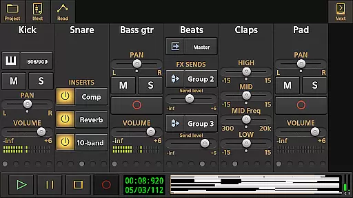 This level of audio fidelity is crucial for professional-grade music production. Users can record using the internal mic or connect a multi-channel USB audio interface for superior sound capture. The app also features real-time effects like chorus, compressor, delays, EQs, reverb, noise gate, pitch shifter, and vocal tune, ensuring that every track sounds polished and refined.