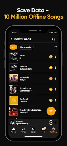 The app's offline functionality allows downloading entire albums for data-free listening, which is perfect for environments with limited connectivity. Additionally, Audiomack supports local file playback including MP3s, WAV, M4A, AAC formats, ensuring all your music files are accessible in one place. Users can also follow their favorite artists and enjoy ad-free service for a nominal monthly fee.