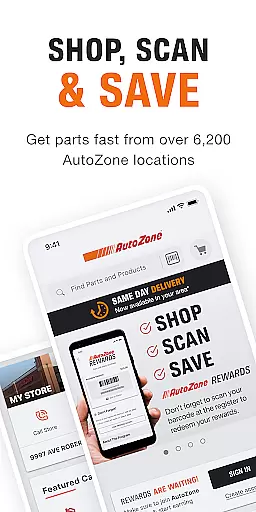 Another significant advantage is the Same Day Delivery service, available in select markets, which guarantees delivery within three hours for orders placed by 6 PM. For those preferring self-service, the Manage Your Vehicles section lets users keep track of all their vehicles' service histories and specifications in one place. Moreover, the app’s integration with AutoZone Rewards ensures that users can effortlessly monitor their points balance, helping them save money on future purchases. These features collectively create a seamless and efficient user experience.