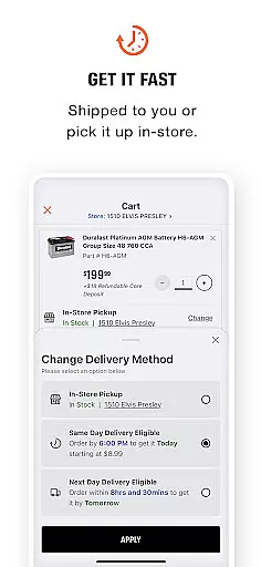 For online purchases, the app offers different delivery options, including same-day delivery in select markets. Each option comes with clear pricing, allowing users to choose based on their budget and urgency. This transparency extends to the AutoZone Rewards program, where users can track their balance directly on the home screen.