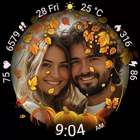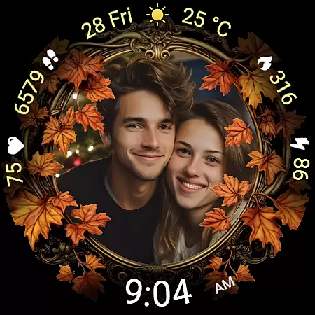 Autumn Photo Frames stands out with its innovative blend of personalization and seasonal design. The core feature lets users set their own images inside elegant autumn-themed frames, creating a unique and sentimental watchface. With 10 frame designs inspired by fall colors and elements, users can match their mood or seasonal vibe effortlessly.