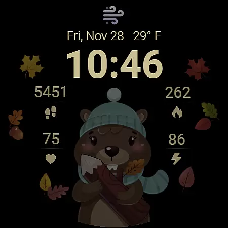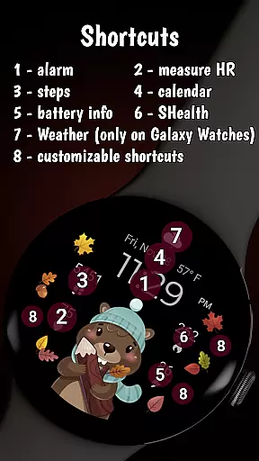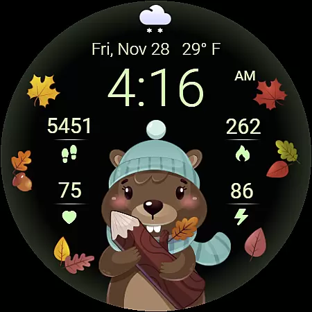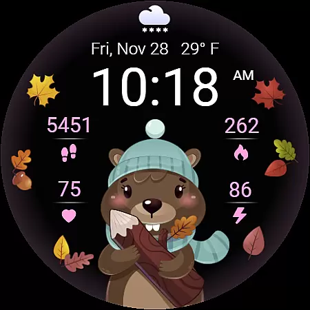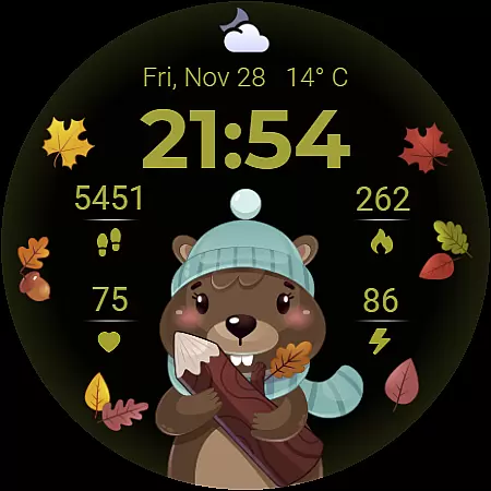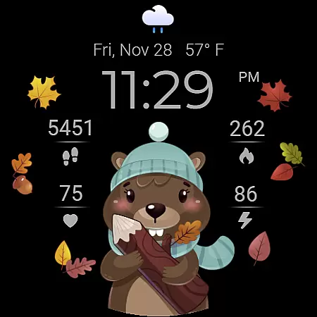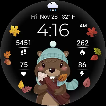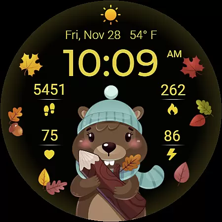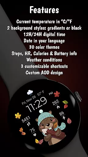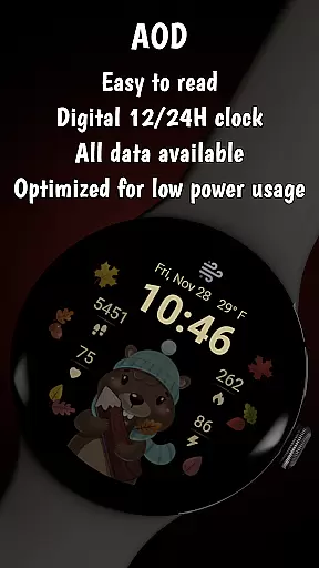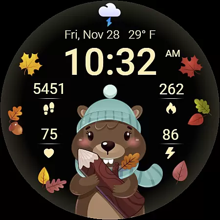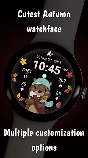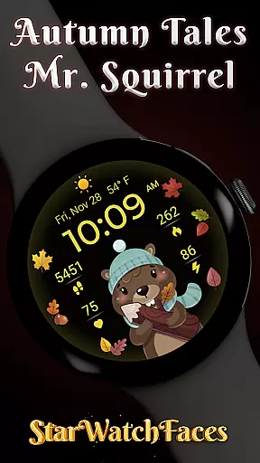 Autumn Tales: Mr. Squirrel is a premium Wear OS watchface that combines the cozy charm of autumn with advanced smartwatch functionality. Featuring real-time weather updates, health tracking, and customizable design elements, this lifestyle app transforms your smartwatch into a personalized seasonal companion.