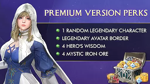 Exclusive to the premium version are incredible bonuses including a Random Legendary Character, Hero's Wisdom, Mystic Iron Ore, and a Legendary Avatar Border. These bonuses enhance the adventure and provide players with exclusive rewards that give them an edge in the game.