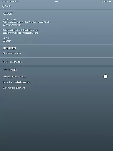 Aviation Supplies & Academics (ASA), a leader in aviation training and publishing, endorses this app, further validating the authenticity of its content. With ACS codes and FAA references supporting the knowledge, risk management, and skill questions within the app, users receive a comprehensive study tool that helps them identify areas of strength and opportunities for improvement.