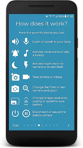 Additionally, BabyCam includes options to take pictures and videos, allowing parents to document milestones and subtle changes in their baby's development. This functionality ensures that parents have a reliable record of their child's growth, enhancing the app's value as a comprehensive parenting tool.