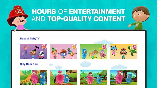 BabyTV is a premier educational video app designed specifically for toddlers and preschool children aged five and under. This 100% ad-free platform offers hundreds of quality kids' videos, including nursery rhymes, baby songs, and cartoon episodes that introduce early learning concepts through beloved characters. The app's content spans various engaging series such as 'Charlie and the Numbers' and 'Billy Bam Bam,' while also providing relaxing bedtime shows to help children sleep peacefully.