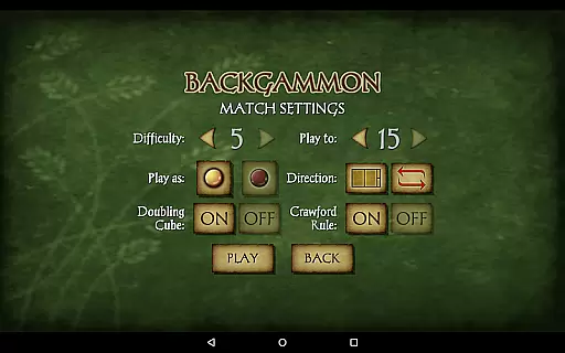 The app provides features such as Full match play, Doubling Cube, and Crawford rule options, which are integral parts of standard backgammon rules. These elements ensure that players can enjoy an authentic experience that is true to the original game.