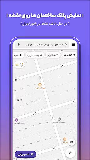 In addition to real-time updates, Balad's map includes building license plates which assist drivers, especially those working with ride-sharing services or delivery platforms, to pinpoint locations with greater precision. This level of detail enhances the overall navigation experience, making it more reliable and efficient for users.