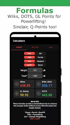 Progress visualization is a critical component of any fitness app, providing users with clear insights into their achievements and motivating them to pursue further improvement. Bar Is Loaded 2 addresses this need through its comprehensive suite of powerlifting calculators, such as Wilks, IPF Points, DOTS, and Sinclair or Q-Points for weightlifting enthusiasts.