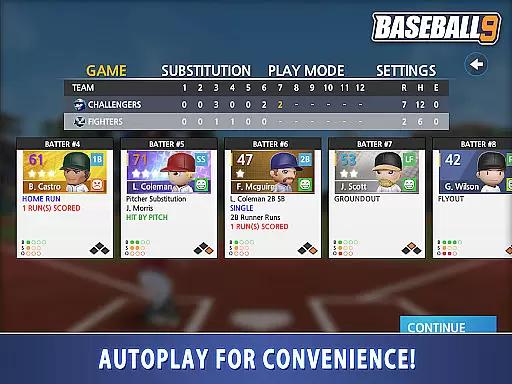 BASEBALL 9 boasts a rich set of features designed to provide an immersive baseball experience. The game's lean and fast gameplay ensures that every match is action-packed without unnecessary delays. With specialized auto functions available by game, inning, or player, users can tailor their playstyle to suit their preferences, whether they want full control or a more relaxed experience.