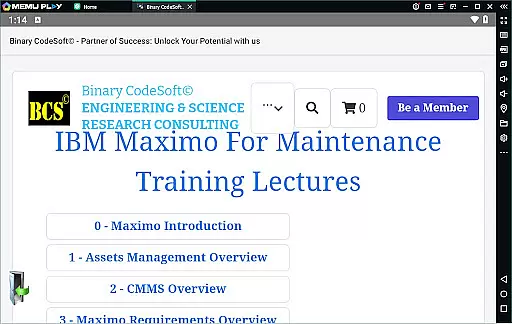 BCS©-Maximo Maintenance course is a comprehensive business application designed to educate users on maintenance operations and IBM Maximo implementation. The app covers various aspects of maintenance strategies, planning, scheduling, and associated costs.